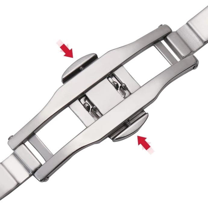 Novi, nekorišteni 12-mm remen za ručni sat od nehrđajućeg čelika. Prodajem ga jer je došlo do greške pri narudžbi i isti je premalen za moj sat.