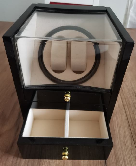 WATCH WINDER za 2 sata i ladicom za odlaganje satova...sa adapterom...DOBRO SAČUVANO STANJE