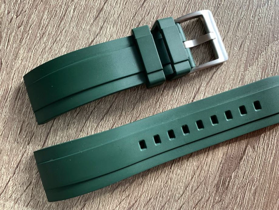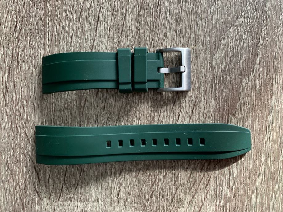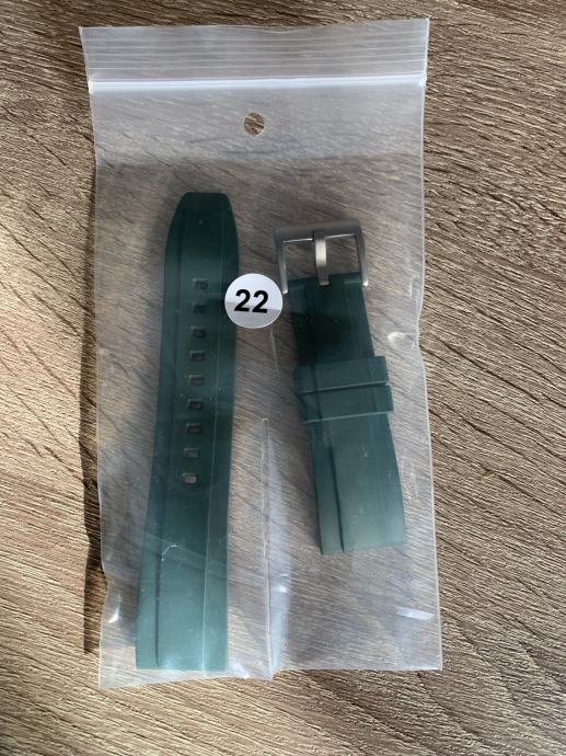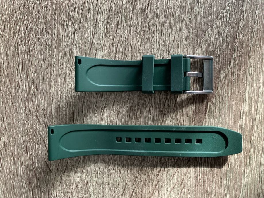 Prodajem gumeni remen za sat zelene boje širine 22 mm. Remen je novi i odlične kvalitete.