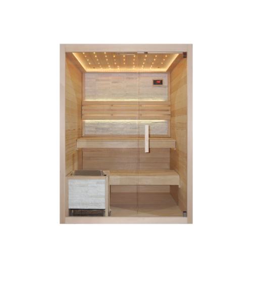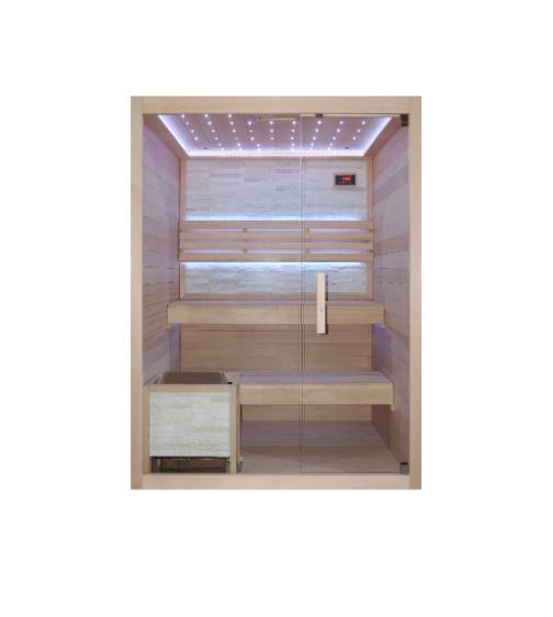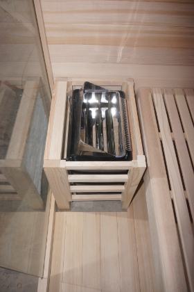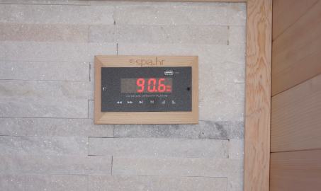 peć s kamenom i zaštinim drvenim okvirom obloženim kamenim mozaikom s dvije stranice - 4,5kW kW/230V/400V s izbornikom termperature i radnim vremenom na peći