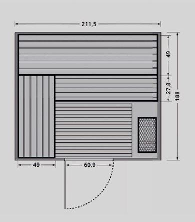 Dimenzije: 211,5 cm (širina) x 220 cm (visina) x 188 cm (dubina)
