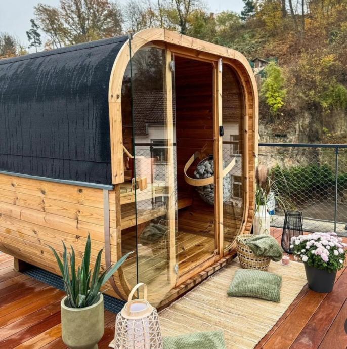 Dizajn bačva saune pruža nekoliko prednosti. Oblik ove saune osigurava brzo vrijeme zagrijavanja.