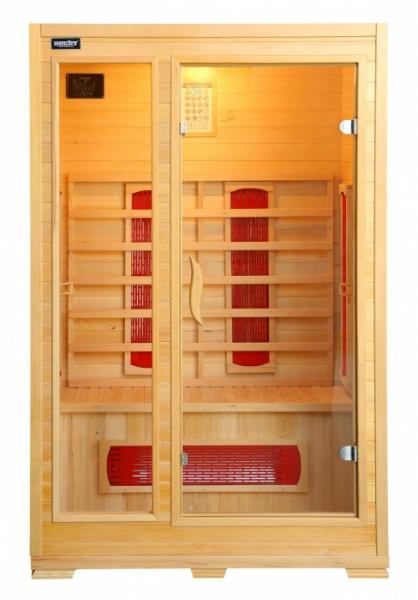 HECHT ESSENTIAL Infrasauna za unutarnju uporabu namijenjena 1 - 2 osobe. Sauna je opremljena ionizatorom zraka i svjetlosnom terapijom.