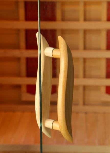 Sauna je izrađena od kanadskog drveta, također poznatog kao tsuga ili hemlock. Ovo drvo ne proizvodi nikakav miris, ne sadrži smolu koja bi mogla popustiti toplinu.