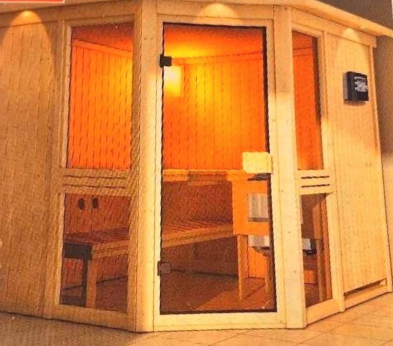 Prodaje se Finska sauna dimenzije 245×210 cm. Sauna je korištena 20tak puta i doslovno je kao nova. Ležaljke idu u L, peć je jačine 9 kw. Može se koristiti kao Finska ili parna sauna. Moguća dostava uz dogovor. Sve info na +385917339647
