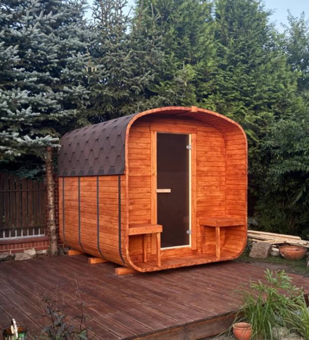 - Sauna dolazi u zaštitnom pakiranju, prikladnom za vanjsko skladištenje prije montaže.