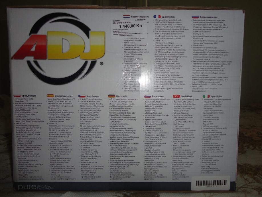 Prodajem potpuno novi, zapakirani ADJ Monster Duo LED (imam dva, jedan otvoren,