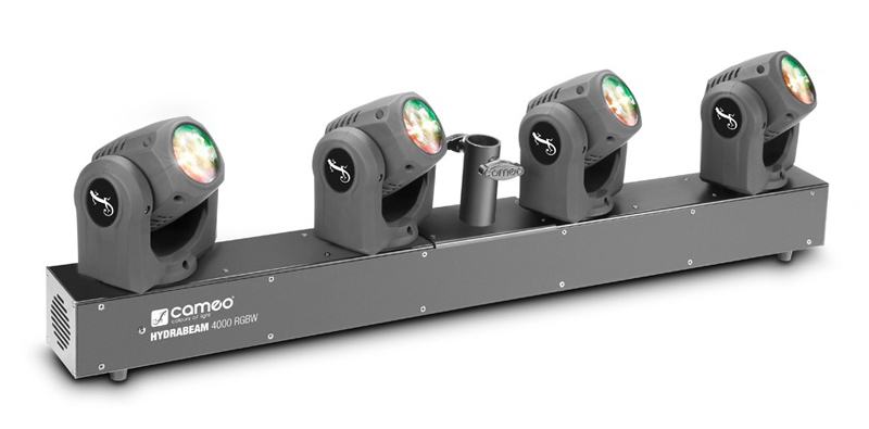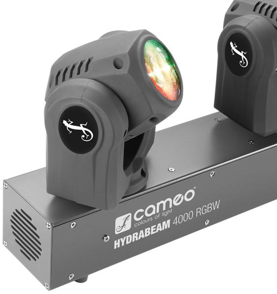 Cameo Hydrabeam 4000 features four individually controllable moving heads on a 100 cm (3.28 ft.) bar with ultra fast 540° pan and 270° tilt. They are equipped with powerful 32 W quad LEDs for brilliant, uniform colour mixes and project razor sharp beams with an extremely focused 2.5° spread.
