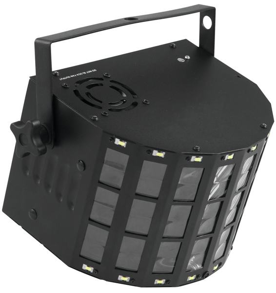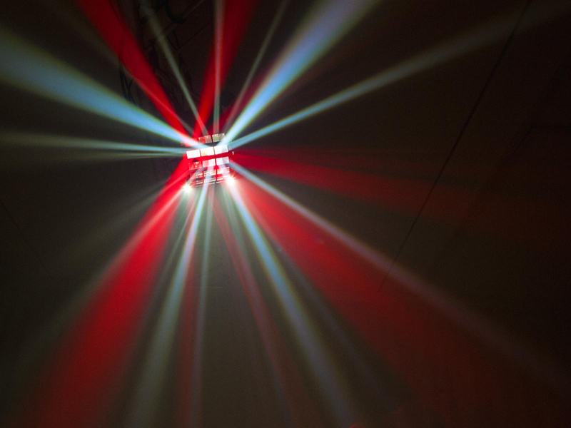 Functions: Static colors, internal programs, auto mode, sound control, strobe, motor rotation and speed adjustable via DMX, Master/Slave