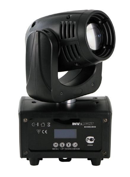 INVOLIGHT "MiniBeam 30" is a lively, small moving head whose compact size but you should never underestimate. He "shoots" an extremely narrow, bright, white beam across the room, reaching an enormous reach. With only 3° degree angle of the white beam is a real lightsaber in the air, especially when party mist is used. The white LED light source provides 30 watts and attained by the very skilled dissolved optics an extreme brightness