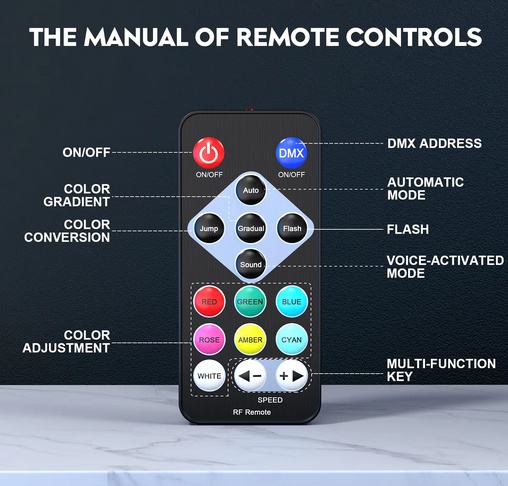 - Način upravljanja: Ručni / Automatski / Spajanje putem DMX - Kabela