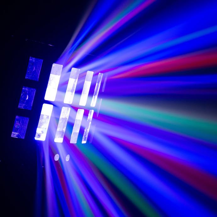 - LED light set 4 effects in 1 BoomToneDJ DerbyFX 4in1