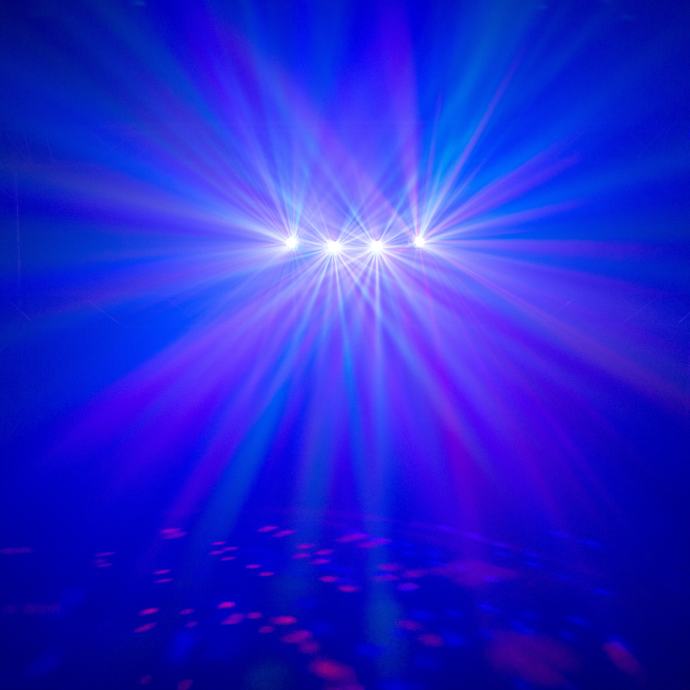 - Svaka točka sastoji se od 9 RGBW LED dioda od po 1 W i efekta s više zraka koji se okreće u njegovom središtu