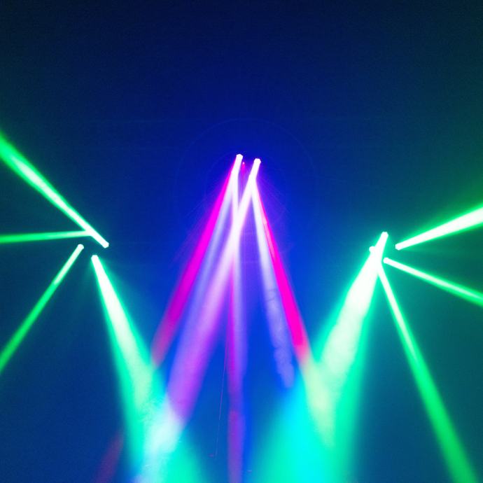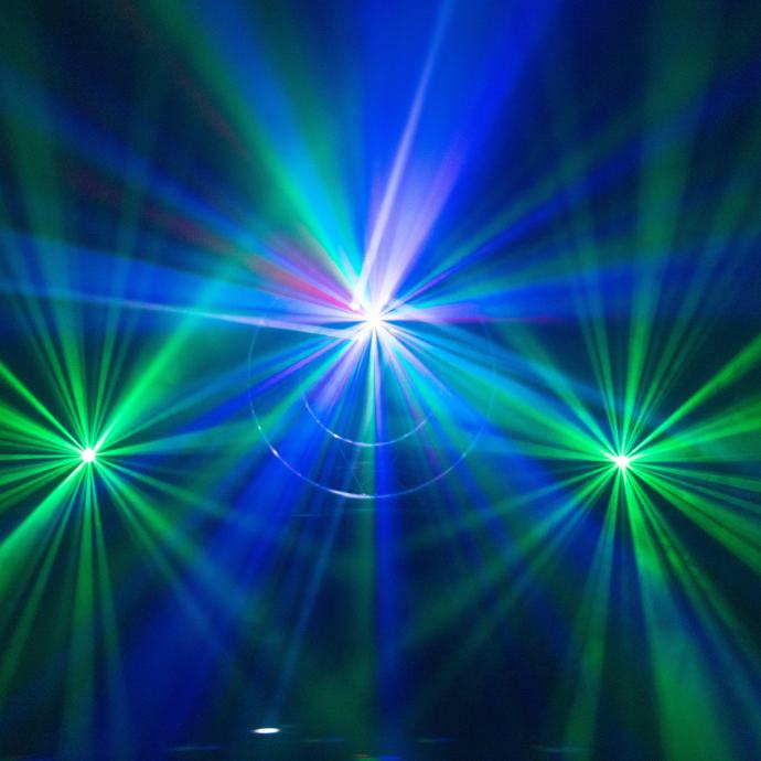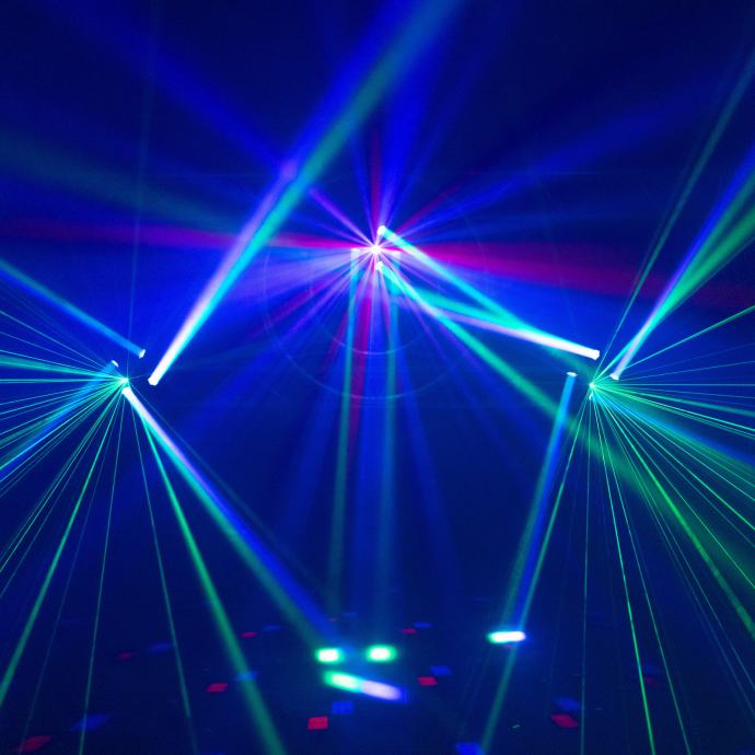 - LASER + multibeam Beam efekt + Disco ball + Strobe
