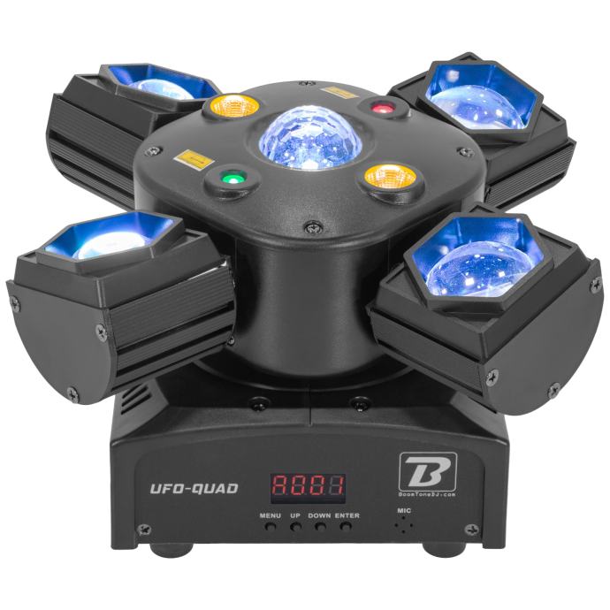 BoomTone DJ UFO-QUAD 4 LED efekti svjetlosni show: Beam, Disco ball, Strobe i multipoint LASER! Idealno za klubove, mobilne DJ-e, kućne zabave, plesne dvorane itd.