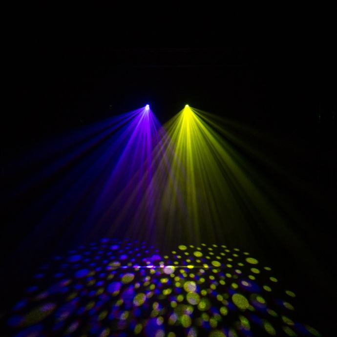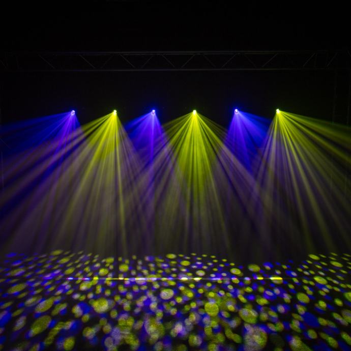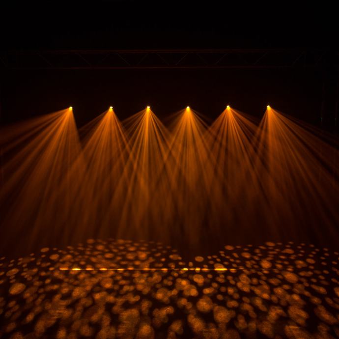 - Wheel of 6 interchangeable rotating glass Gobos (22.9mm outer diameter, 18mm inner diameter)