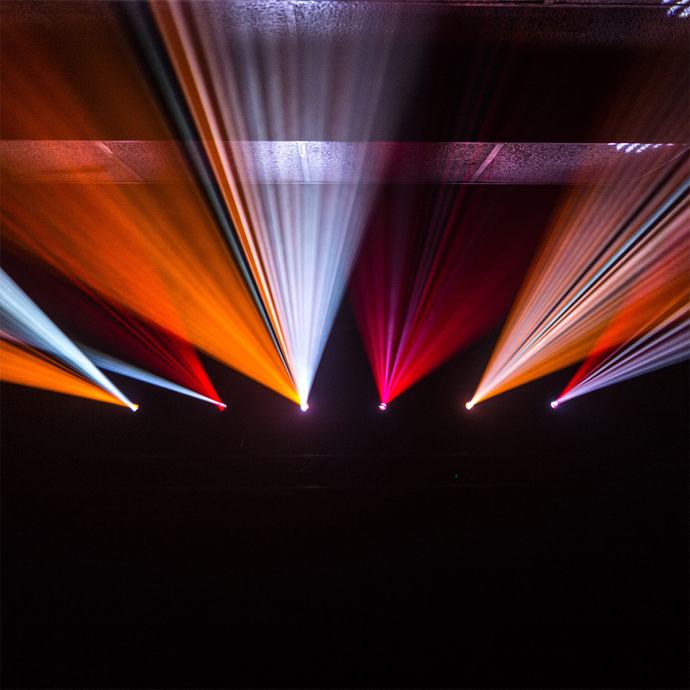 - Control modes: DMX cable, automatic, automatic with sound detection.