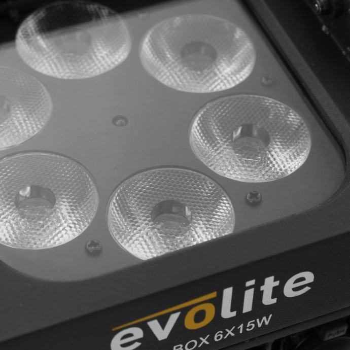 - 6x 15 W RGBWA 5-in-1 LED spotlight