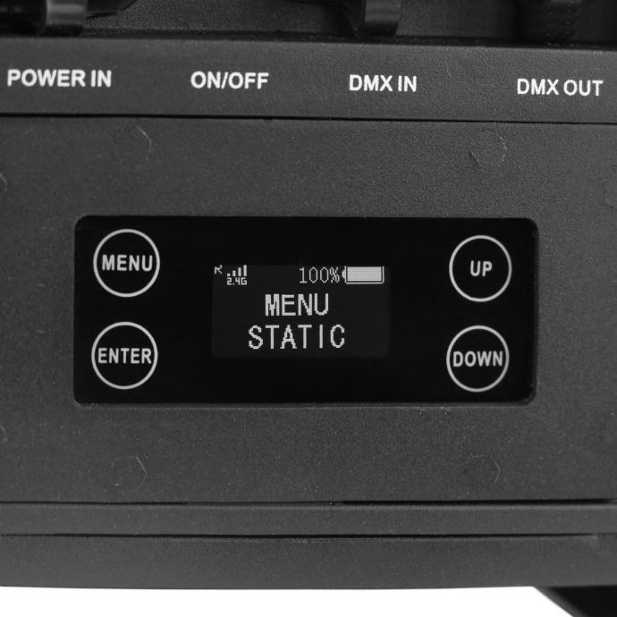- Integrated wireless DMX transceiver