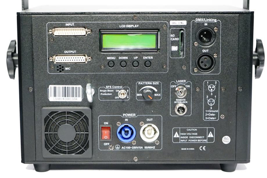 Professional Full Diode RGB Animation Laser, R:1000mW + G:1000mW + B:3000mW Analog Modulation (total 5W) , R: 635nm+G: 520nm+B:450nm, scanner 40KPPS, ±30°