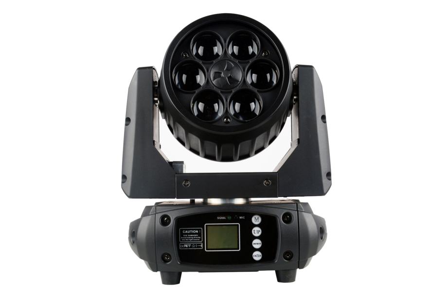 LED wash moving head, 6*15W 4-IN-1 RGBW leds, 6°-60° electronic linear zoom, 13/15 DMX channels, powercon in/out,
