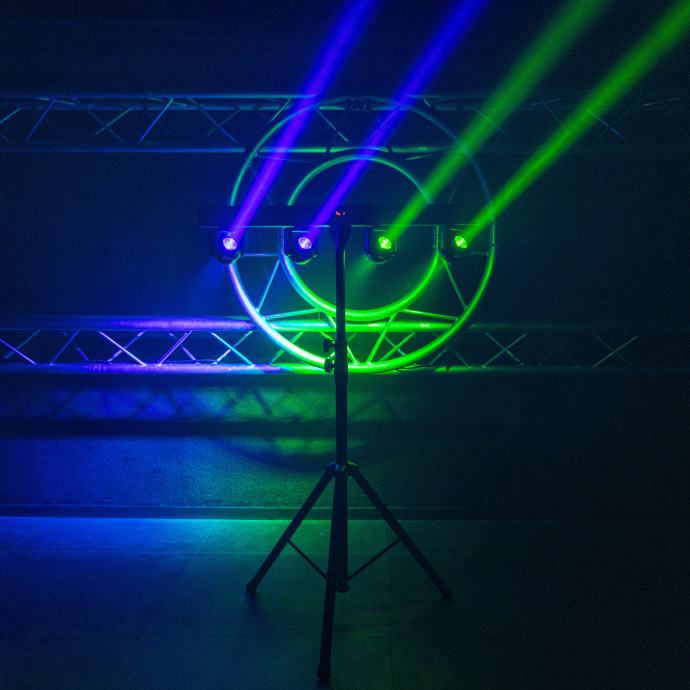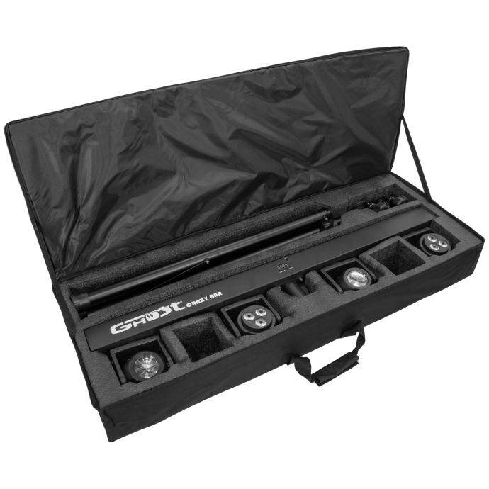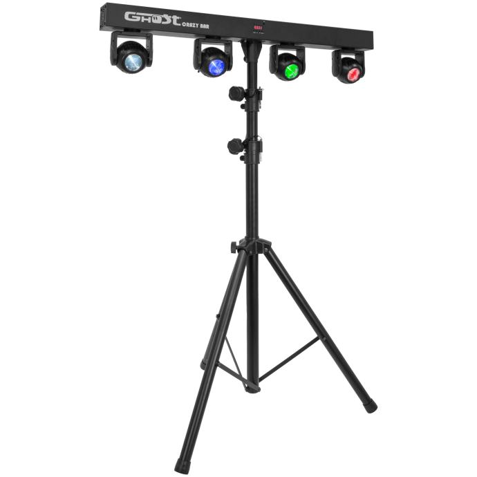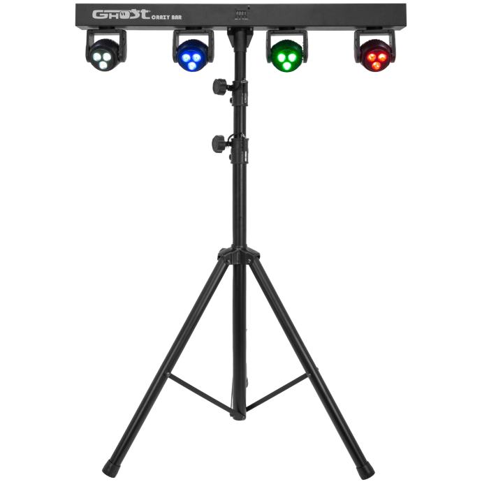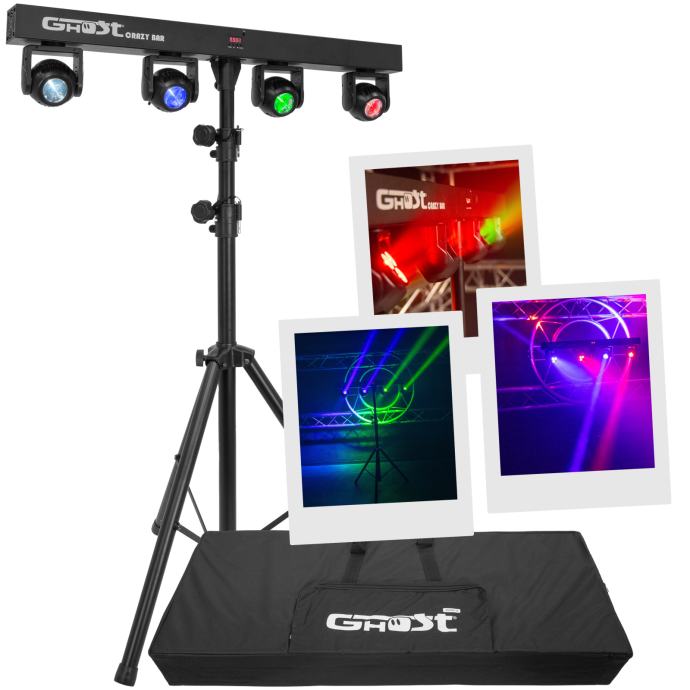Ghost Crazy Bar: Light show stalak s dvostrukim efektom: snop (beam) i efektom bojanja (wash) s RGBW LED diodama. Plug & Play, DMX upravljanje, sa stativom i torbom za nošenje. Savršeno za zabave i mobilne DJ-e.