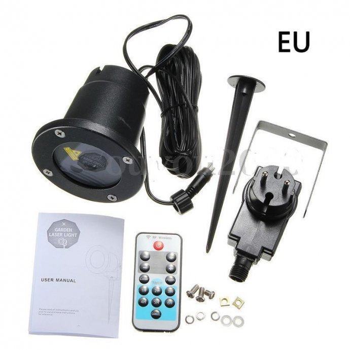 Pakiranje: Laserska svjetlost × 1; Transformer (vodootporni od IP68) × 1; Stand × 1; Daljinski upravljač (RF) br x1 baterija; Korisnički priručnik (na engleskom jeziku) × 1