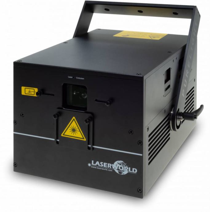 The Laserworld PL-10.000RGB MK2 show laser light is completely equipped with diodes and has a good white balance, with linear color fading behaviour and high visibility.