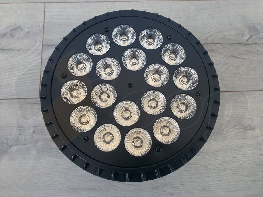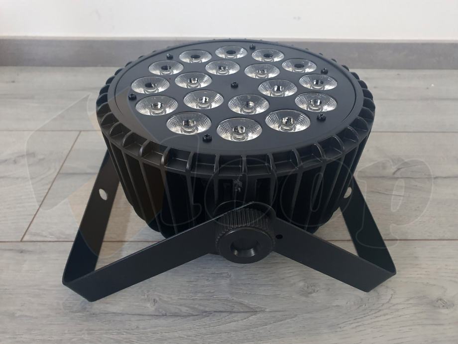 moderni, snažni LED reflektor, 18x18 watt; 6u1 (red, green, blue, white, amber, UV, strobo...), vrlo tih i malih dimenzija. Robusno aluminijsko kučište.
