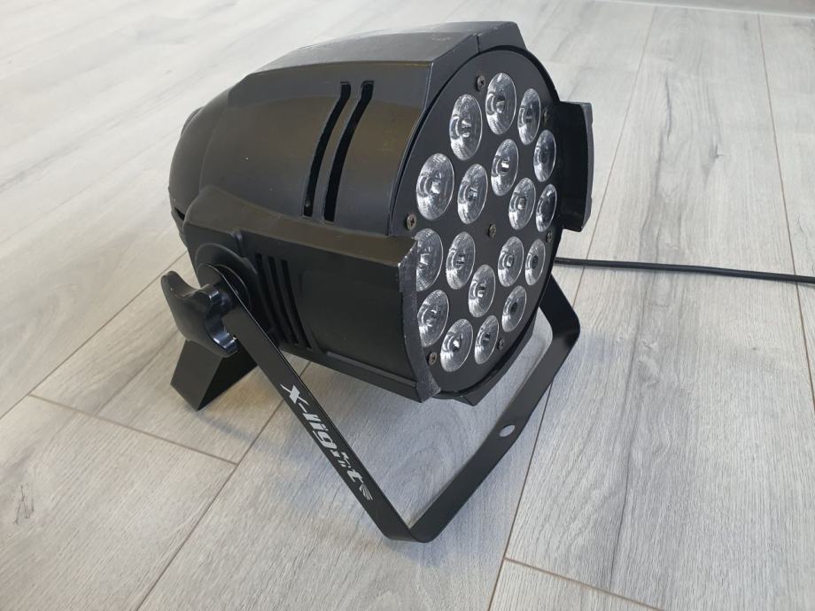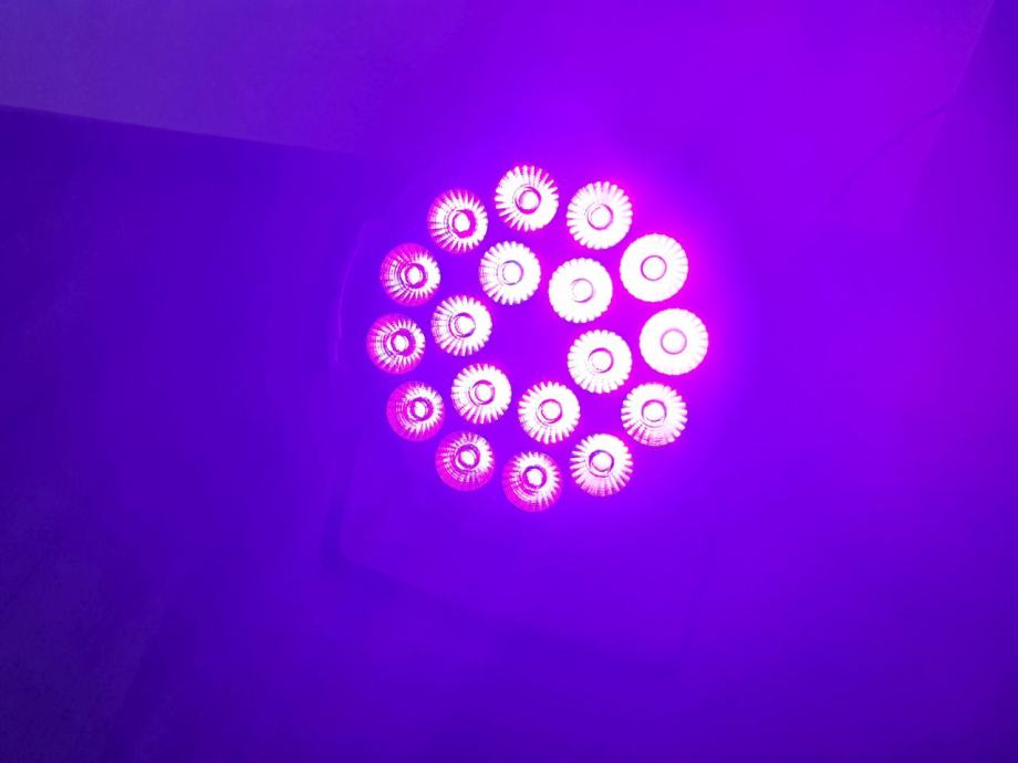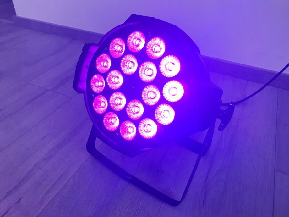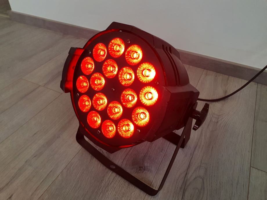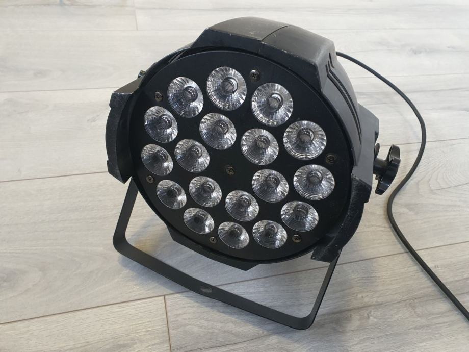 LED reflektor RGBW (red+green+blue+white), s 18 x 3W 3u1 LED, mogućnost reprodukcije i bijele boje. Provjereno i potpuno ispravno. Dostupno više komada.