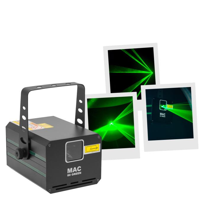 Green color animation LASER, 80 mW power, automatic, DMX, musical modes.