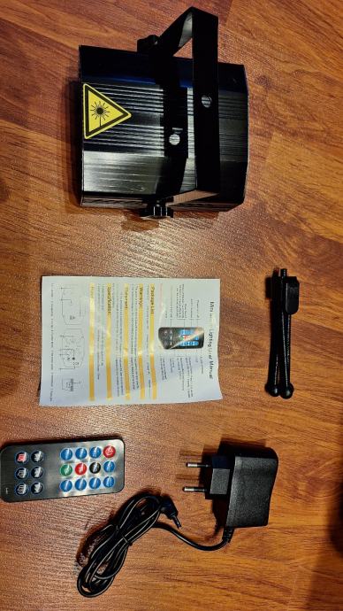 Prodajem mini laser stage light sa napajanjem i mini stalkom. Laser emitira u obliku velikog broja zelenih i crvenih točki koje šetaju po podlozi. Nov nekorišten.