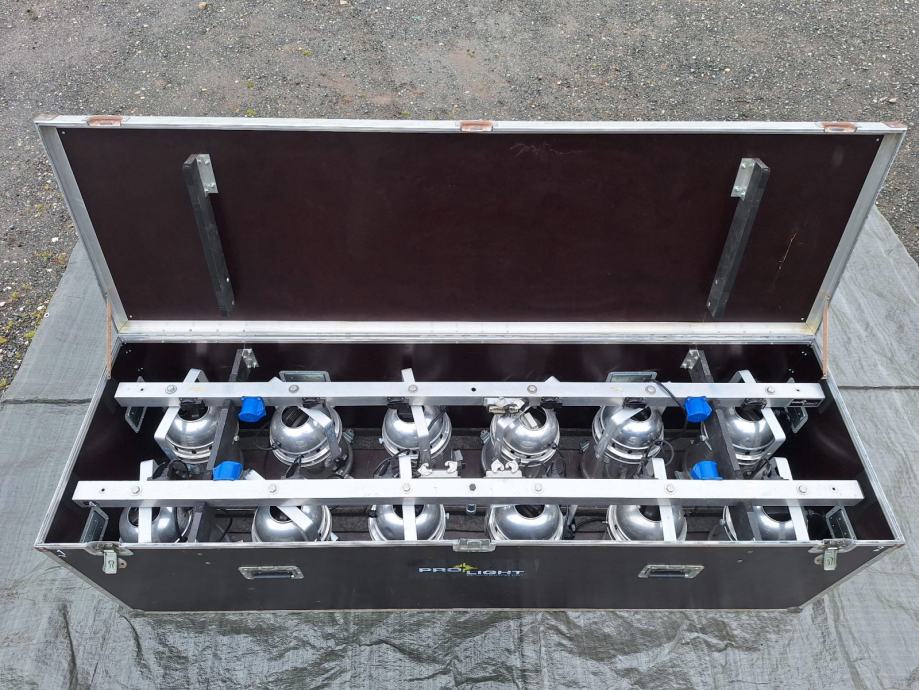 SET 12 Reflektora PAR 64 1000 W + 2 par bara + Flight case GRATIS!