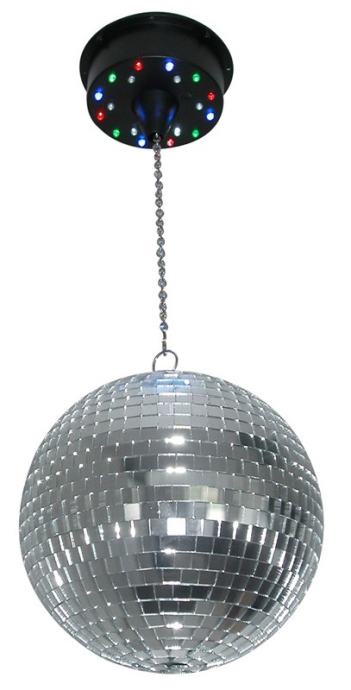 A battery powered low-noise motor for mirror balls up to 2 kg fitted with 18 coloured LEDs. Especially in the dark this produces a stunning effect. Stand alone or sound activated