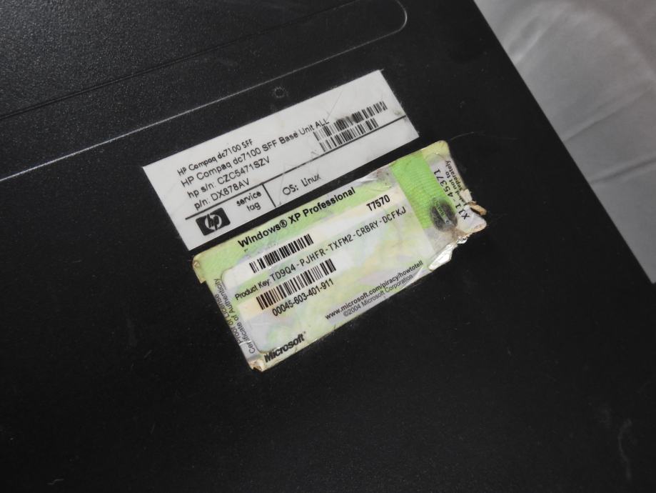 Model: HP Compaq DC7100 SFF (Small Form Factor)