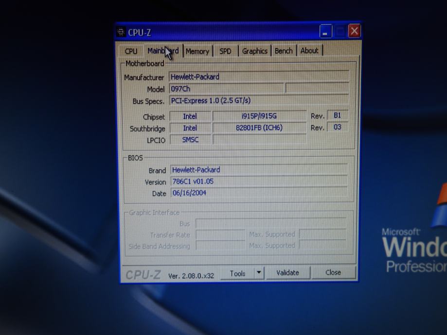 Matična ploča: Hewlett-Packard 097Ch, chipset Intel i915P/i915G, BIOS 786C1 v01.05