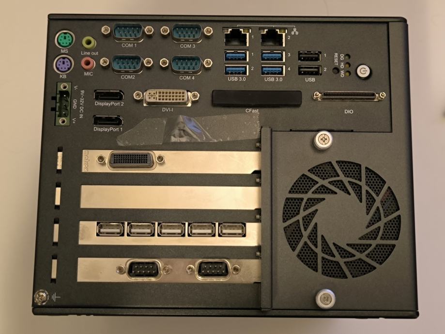 Robusno industrijsko računalo, fanless mogućnost. Veliki broj I/O portova.