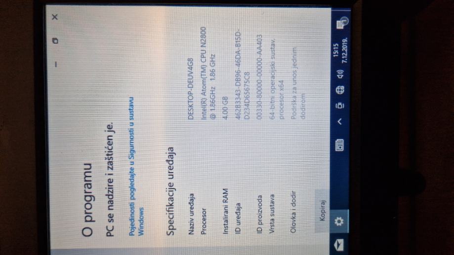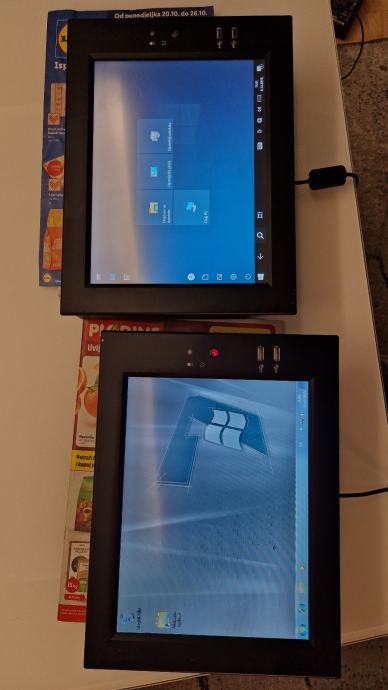 Panel pc za ugradnju i upravljanje raznim strojevima, 10inch led vacom touch panel (26cm) intel atom dual core 2x1,86ghz, 4gb dd3 ram, 120gb ugrađeni ssd + utor za sata 2.5 inch hdd, utor za mem karticu, 4x USB, 4x com prikljucak, 2x mrežna kartica, hdmi i vga out za dodatni monotor. Instaliran win 10 ili win7 profesional, na win 7 je puno brzi , ali i win 10 radi, moze po izboru što vam odgovara. Ima par ogebotina na okviru. za obadva dogovor