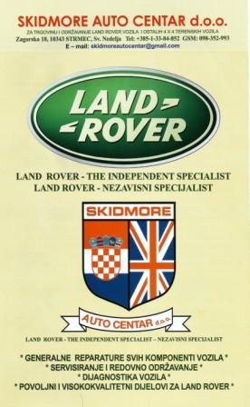 Generalni smo uvoznici za Hrvatsku BRITPART ltd. Land Rover-ovih dijelova iz Engleske. Skidmore auto centar garantira kvalitetu i stručnu ugradnju svih dijelova. Brzinu usluge jamči i veliki izbor odmah dostupnih dijelova na našem lageru (od ovjesa, motora, kočionog sistema do servisnih dijelova), a sve što eventualno nemamo za Vaše vozilo nabaviti ćemo u najkraćem mogućem roku.