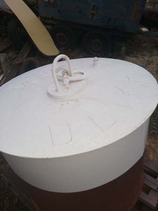 Bova je od lima 6mm, ispreskarena i ofarbana 2k bojom, uške i perno su od inoxa 20mm , promjer 80cm, visina 100cm, tezina cca 250kg