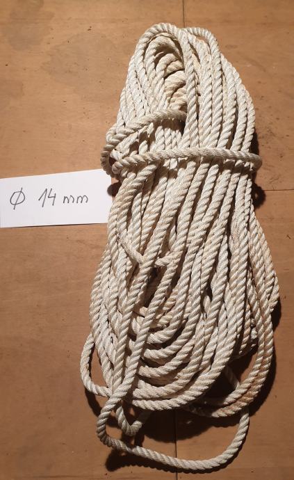 Prodajem novi bijeli sukani poliester konop debljine 14 mm i dužine 43 m koji ne pluta.