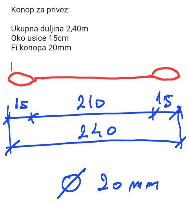 Prodajem 2 kom konopa za privez, duljine 2,40m, fi 20mm, ušica 15cm.