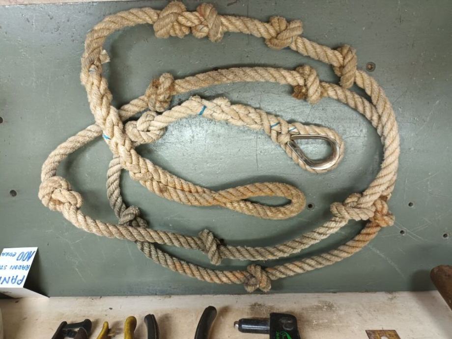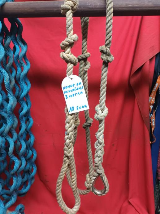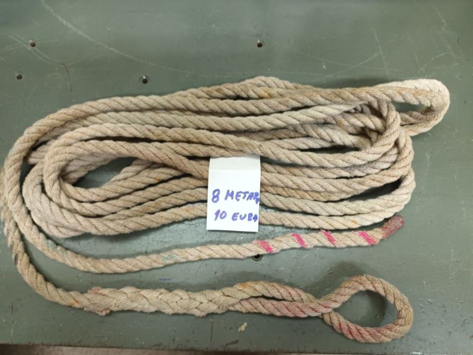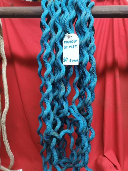 Konop za privlačenje brodice, sa upletenim srcem na jednom kraju i upletenom omčom na drugom kraju, debljine 15 mm, dužine 3 metra, 10 eura . Plavi konop debljine 15 mm, dužine 30 metara, 20 eura. Konop prednji vez "V" sa upletenim srcem 10 eura. Prodajem sve sa slika. Novi Zagreb Utrina, 091/9240-293