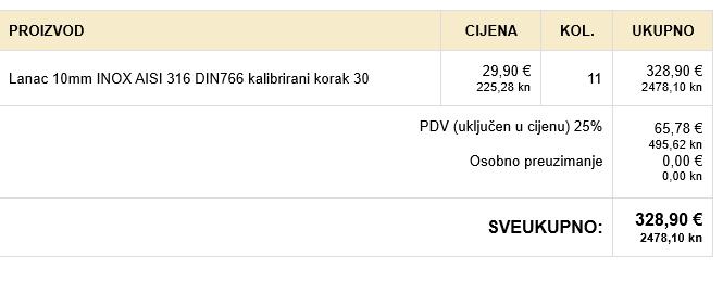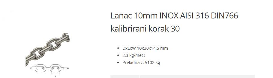 Lanac inoks 10mm AISI 316 DIN766 kalibrirani korak 30