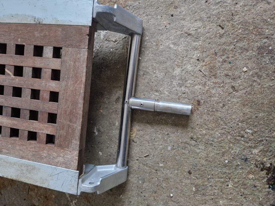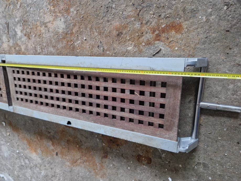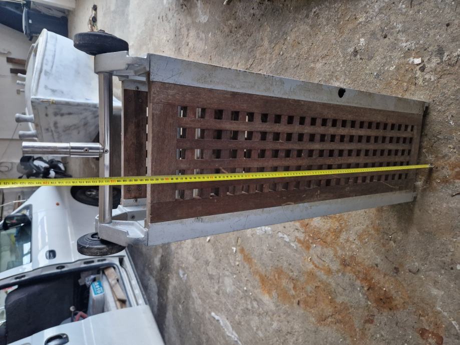 Preklopna pasarela kombinacija aluminij tikovina, s kolima za na kraj-rivu, jednostavna ne zauzima puno mista- preklopna-lagana za koristenje, s hvatistem za plovilo, nesmetaju joj pokreti i po.icanja plovila prilagodavva se i po vi sini, plima-oseka,i po pomicanju plovila od rive- kotacici!!