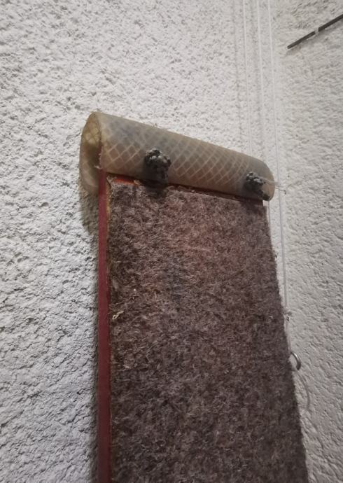 Pasarela, 190cm x 20cm, sa jedne strane tepison, s druge mahagonij letve i protuklizne trake. Gumom zasticena oba kraja. Novo