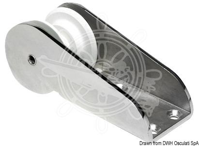 Od sjajnog inoxa AISI 316 proizvedenog postupkom mikrofuzije. Kolutirnik od bijele plastike. Univerzalan za konope ili lance do težine od cca.10 kg.