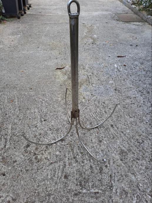 Ribarsko sidro od inoxa težina 3 kg sa pocinčanim lancem 2 m. Krakovi od 8 mm inoc 316 žice . Kad se zapne iravna se i odsidri lagano