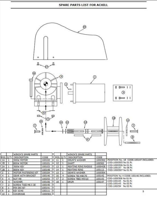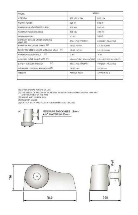 Capstan winch for recovering the tender boat with anodized aluminium drum already set for belt and snap-hook fastening (not supplied as standard with the product).
