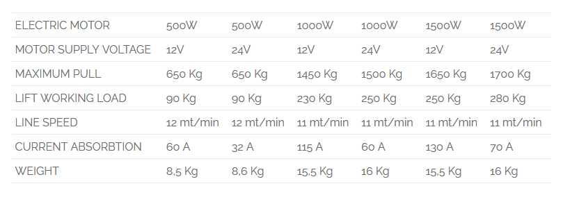 MAXIMUM PULL 650 Kg 650 Kg 1450 Kg 1500 Kg 1650 Kg 1700 Kg